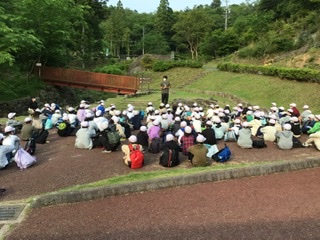 5年生のキャンプ.2日目がスタートしました。 朝の集いの様子です。
