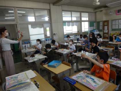 図工では、「コロコロガーレ」の学習をしました。カーブするコース、坂コースなど自分の作りたいコースを楽しく作っていました。コースが完成するのが楽しみです。