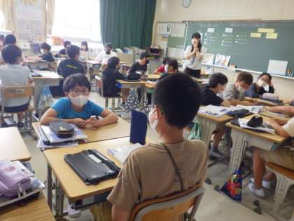 5年2組は、道徳「沈みゆくボート」で、話し合いを通して、グループで意見を出し合い、問題解決に向けて考えをまとめる授業を行いました。