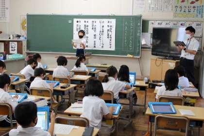 2年生は、タブレットを使った授業の様子を見ていただきました。
