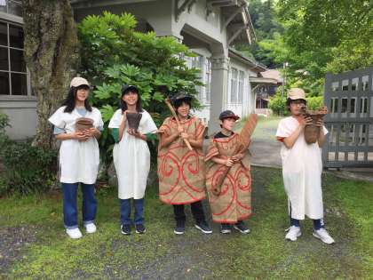 写真のように、昔実際に使っていた大きな金庫に入ったり、昔の衣装を着せてもらって縄文人や弥生人になりきったり、からくりのおもちゃが置いてある小路を歩いたりしました。他にも足助高校の生徒さんが紹介してくださった、豊田に実際にあった歴史を感じて、これからの総合の学習に前向きに取り組んでくれると嬉しいです。