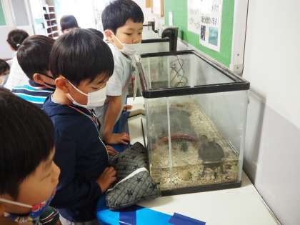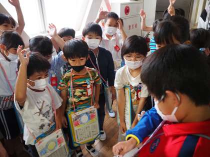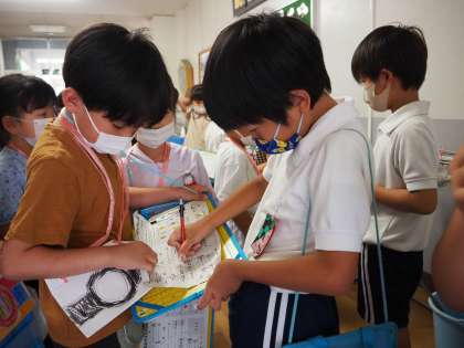 本日は、1・2年生合同で学校探検を行いました。2年生のお兄さん・お姉さんが、いろいろな特別教室のクイズを作って、待っていてくれました。2年生の楽しいクイズや分かりやすい説明のおかげで、1年生は前山小学校のことをもっと知ることができました。学校探検から戻った後に「2年生のクイズが楽しかったよ」「理科室にガイコツがあったよ」などと、楽しかったことや発見したことをたくさん話していました。2年生が一生懸命準備をしてくれて、とても素敵な時間となりました。