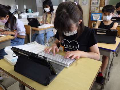 本日、ICT講習会でタイピングについて学習しました。ホームポジションを意識し、素早く、正確に打てるよう練習することができました。