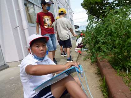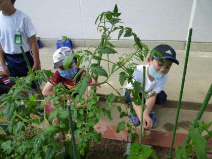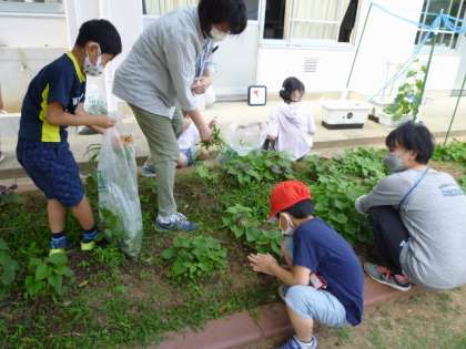 6月10日(金)5時間目の生活単元の時間に、子どもたちが植えた野菜に水やりをしたり、草取りや観察をしたりしました。最初は草取りをする時に手が汚れるのを嫌がる子がいましたが、慣れてくると「ぼく、もう手が汚れても大丈夫だよ。」と得意気に話す姿がありました。また「ミニトマトの実が赤くなってきたよ。」「葉っぱがいっぱいでジャングルみたい。」と、野菜の成長に喜ぶ姿があり、今から収穫が楽しみです。