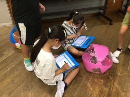4年生の理科は新単元「とじこめた空気や水」に入ります。1時間目の今日は、いろいろなものにとじこめた空気を押してみました。ビーチボールや注射器、空気でっぽう、プチプチ等々・・・。「へこんで形が変わったよ」「押すと手ごたえがあるね」目には見えず、手で捕まえることもできない空気ですが、何かにとじこめればいろいろな感覚を味わえます。これからさらなる追究が始まります!