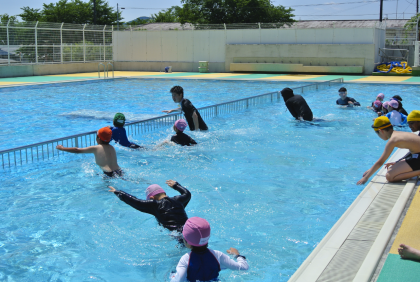 プールでは、頭のてっぺんまで水に入る練習をしたり、