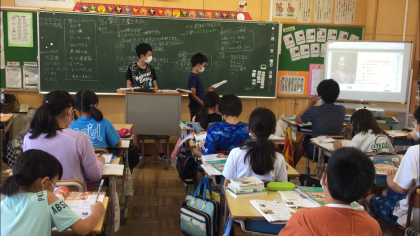 社会科の学習では、子どもたちが大仏ティーチャーをやってくれました。黒板の書き方や説明の仕方もよく考え、わかりやすく教えてくれました。聞いている子どもたちも感動しながら、集中して聞いていました。