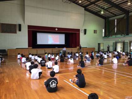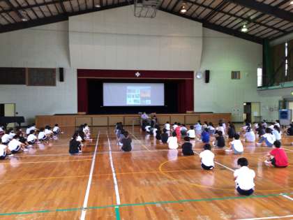 先日、体育館で「中干し」について成瀬さんに講話していただきました。おいいしお米をつくろうと真剣に話を聞く姿が見られました。