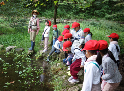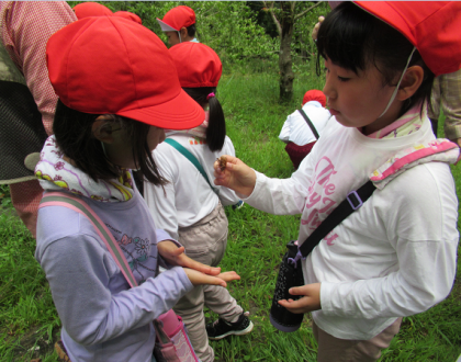 先週の8日(木)に4組、9日(金)に1組、今週の12日(月)に3組、13日(火)に2組が校外学習を実施しました。トヨタの森に出掛け、生き物や植物と触れ合い、自然に親しみました。「ワンダーパワー」と呼ばれる、目や耳、手や鼻などの様々な感覚を使って体験をしました。子どもたちは、「鳥の鳴き声が聞こえたよ」「初めてトカゲを触ったよ」「落ち葉が甘い匂いがしたよ」などと、たくさんの発見をして目を輝かせていました。