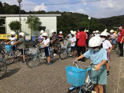 4年1組と2組は、27日に豊田市交通安全センターに行ってきました。自転車の安全な乗り方について、実際に自転車に乗って学習しました。子どもたちは、緊張した面持ちで真剣に取り組んでいました。自転車の点検では「ぶたはとしゃべる」が合言葉です。みなさん、覚えていますか?