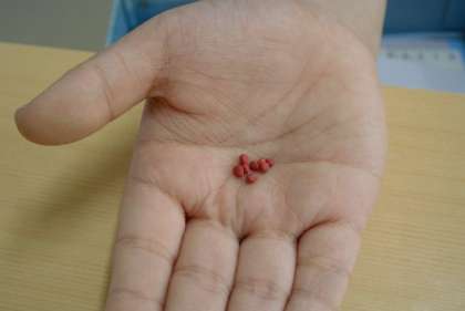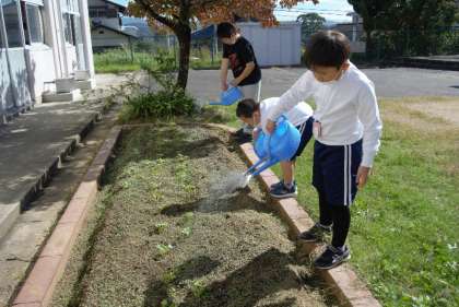 手のひらに乗せた種を見て、「小さいね」「砂粒みたい」と呟いていました。