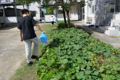 5月に植えたサツマイモも葉っぱが茂って、「ジャングルみたい」と嬉しそうでした。
