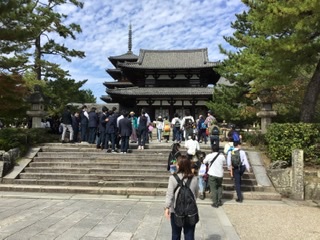 奥に五重の塔が見えます。