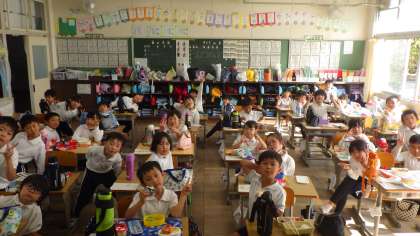 土曜日に運動会が開かれました。小学校初めての運動会。1年生の徒競走、ツバメの演舞、玉入れでは、力いっぱい走り、踊り、投げることができました。教室へ戻り、感想を聞くと、「ツバメが練習より上手に踊れたよ!」、「みんなで力を合わせたからこんなにいい運動会になったよ!」と、とても満足した様子でした。お弁当もおいしく楽しくいただきました。