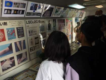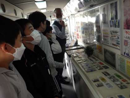 今日は薬物乱用教室に参加しました。県下に一台しかない貴重なバスに乗せていただき、バス内の薬物についての資料を真剣に見ることができました。薬物を乱用するとどうなってしまうのかを知り、薬物の怖さを勉強しました。