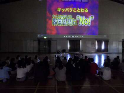 バス内見学の後は、体育館で薬物乱用についてのDVDを視聴しました。ガスボンベや、スプレー缶など身近な物の成分に危険な物もあると知り、正しく使う必要があることが分かりました。将来の自分の身を自分で守るための有意義な学習になりました。