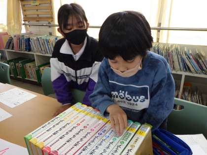 各クラスそれぞれ、図書室で司書さんから百科事典について学びました。