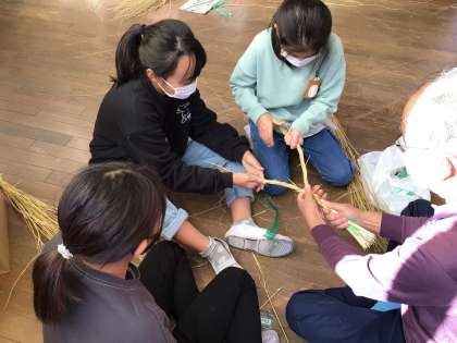 16日の金曜日に、しめ縄づくり体験を行いました。講師の先生方に指導して頂き、友達と協力しながら完成させることができました。