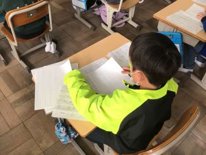 あけましておめでとうございます。新年最初の学校では「書き初め大会」を行いました。冬休みの練習の成果を発揮し、2時間集中して取り組むことができました。結果は明日クラスで発表します。ドキドキしながら待っていてね!