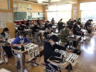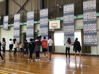 1、2枚目は、書き初め大会・書き初め展の様子です。とても静かに、集中して取り組むことができました。成果はそれぞれですが、さすが6年生というような素晴らしい字が並んでいました。