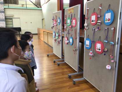 また、校内書き初め展も行われ、全校児童の作品や木目込みクラブの作品を鑑賞することができました。1年生の子どもたちは、上級生の作品を見て「すごいね」「じょうずだな」と感動していました。