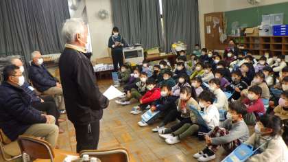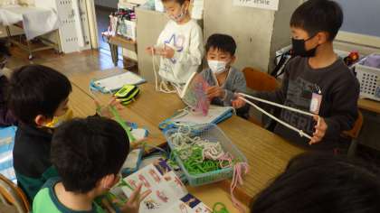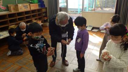 1月19日(木)に「昔遊びを楽しむ会」が開かれました。こま、けん玉、お手玉などの昔遊びを地域のボランティアの方々に教えていただきながら、挑戦しました。「お手玉10回できるようになったよ」「こまがいっぱい回ってうれしい」と昔遊びを楽しむことができました。