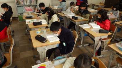 3年生では、国語辞典を使い、語句調べをしています。
