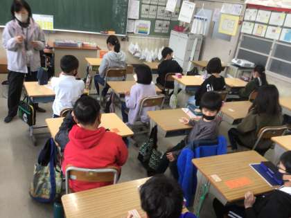 国語科「百人一首に親しもう」の学習では、実際に百人一首をやってみました。好きな句の上の句を聞くと、素早く下の句をとる姿が多く見ることができました。楽しく学習に取り組みました。