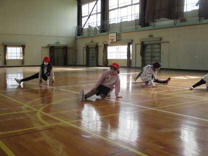 学校公開後の4時間目、7組児童は普段通り、体育館で体育を行いました。