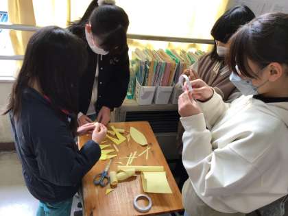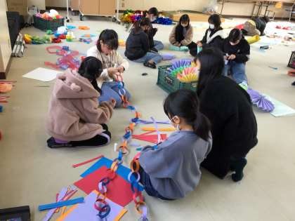 6年生を送る会に向けて、準備を進めています。司会・進行を担当する「運営実行委員」、スライドづくりを担当する「メモリー実行委員」、会場を豪華にする「プレゼント・飾り付け実行委員」、ステンドグラスづくりを担当する「ステンド実行委員」の4つに分かれています。6年生に感謝の気持ちを伝えるために、精一杯準備をして会を盛り上げたいと思います。
