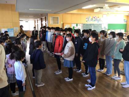 2年生 6年生を送る会の招待状を渡しました