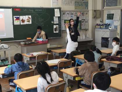 3月8日(水)に外国語活動を行いました。ALTの先生に続いて動物の名前を英語で発音したり、単語を聞き取ったりしました。動物のジェスチャーをしている友達を見て英語で答えることができました。また、動物と色の英語を聞き取ることで、ワークシートに色を塗ることができました。様々な活動を通して、楽しく英語を学ぶことができました。授業中は、なるべく英語で話そうと頑張っている姿が見られました。