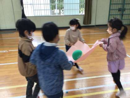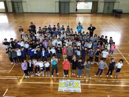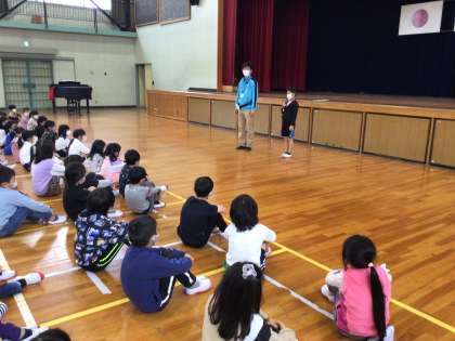 3月23日(木)に、2年生最後の学年集会を行いました。レクレーションをしたり、先生や転出児童の話を聞いたりしました。「じゃんけん大会」では、先生とクラスみんなで対決し、「空飛ぶリレー」では、みんなで協力してボールリレーを行いました。また、先生たちの演奏「BINGO」を聴きながら、一緒に歌いました。最後に2年生みんなで楽しく過ごすことができました。