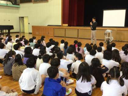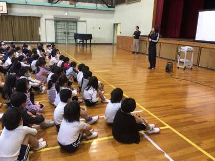 今日は2校時に体育館で学年集会を行いました。初めに4人の先生の自己紹介、続いて柴田先生からいじめについての話がありました。みんな真剣に話を聞いていました。少し時間に余裕があったので、じゃんけん大会をしました。先生とじゃんけんをして一番早く全員勝ち上がるのはどのクラスかを競い合いました。
