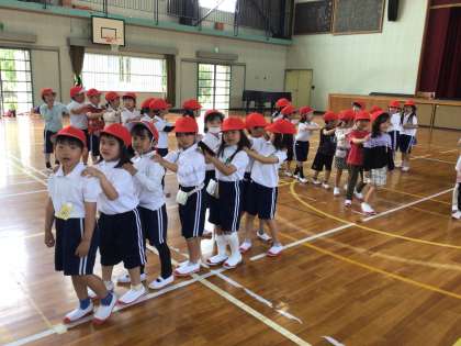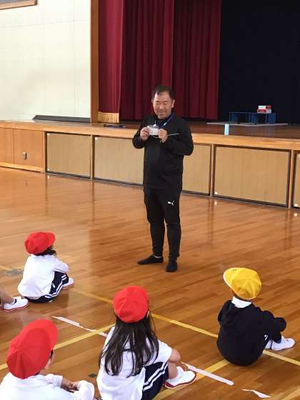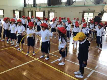 話を聞くときの体操座りが上手になり、背中をぴんと伸ばしていい姿勢ができる子が増えてきました。また、友達を応援したり相手を見つけてじゃんけんをしたりと目を輝かせて活動する姿が多く見られました。