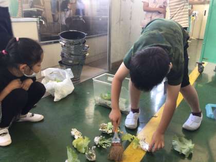 今理科の学習で、モンシロチョウの幼虫を飼育しています。連休明け、フンだらけの飼育ケースを掃除しました。国語の学習でも、「自然のかくし絵」の学習が始まります。敵から身を守るための「ほご色」について、段落ごとに読み取りをします。3年1組には、「本紹介係」がありますが、今回紹介してくれたのも、虫つながりで「むしたちのさくせん」でした。休み時間にはトカゲ探しやエサになる虫探しに夢中な子もいます。自然を五感で満喫している子どもたちです。、