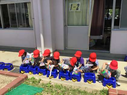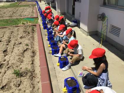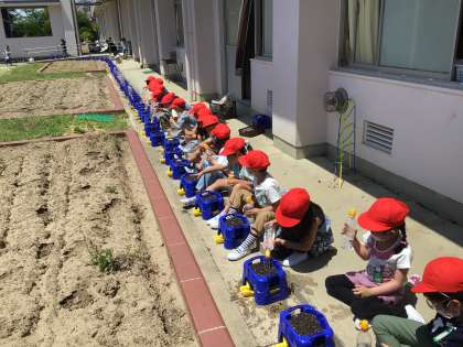 5月11日(木)に朝顔の種まきをしました。大きく育ってほしいという思いを込めて水やりをしています。毎朝欠かさずに水やりをし、早く芽が出ると良いですね。ご家庭で朝顔の様子を聞いてあげてください。今後の成長もしっかり観察していきたいと思います。