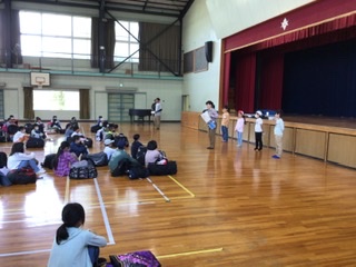 今日から5年生はキャンプです。 まずは出発式の様子です。