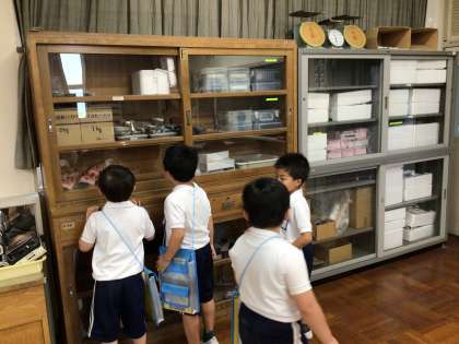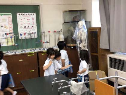 先週は、生活科「がっこうとなかよし」の学習で、『音楽室』『理科室』『図書室』『活動室』を探検しました。