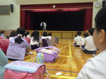 今日は防犯教室がありました。どんな姿の人でも不審者の可能性があることやどんな人も誘拐される可能性があることを学びました。また、実際に襲われそうになった時、どのように対応すればよいのか、実演練習をしました。