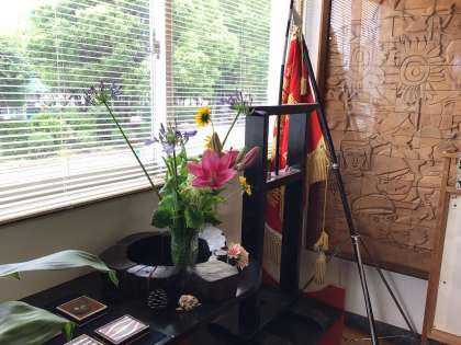 地域支援コーディネーターの栗本さんが、ご自宅に咲いているきれいな花を玄関と職員室前廊下に飾ってくださいました。殺風景な廊下がとても華やかになります。いつもありがとうございます。ご来光の際はぜひご覧になってください。