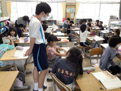 末野原中学校から14人の生徒の皆さんが、職場体験学習に来ました。今日が最終日です。3日間という短い期間でしたが、先生という職業を間近で見て、何かを感じてくれたら嬉しいです。