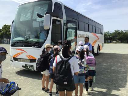 6年生が足助散策に出かけました。出発式を行い、みんな元気にバスに乗り込みました。今日は大変暑くなっています。水分補給や帽子をかぶる、マスクを外すなどの熱中症対策をしっかり行い、有意義な活動になるようにしたいと思います。