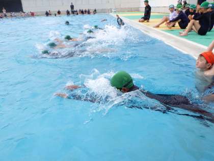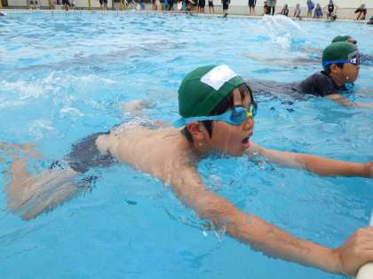 4年生は、イルカコースとかめコースに分かれて水泳運動を行っています。今年は深いプールを使用することもあり、初めはとても緊張していました。しかし、自分のめあてを達成するために、みんなとても頑張っています。ご家庭でも話題にしていただけると有難いです。