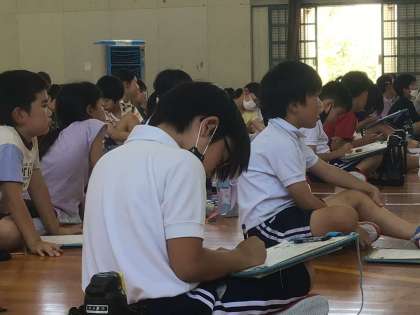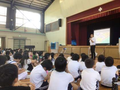 先日の「トヨタ会館」見学をきっかけにして、トヨタ自動車の車や未来に向けての取り組みについて興味を持った子どもたちのために、トヨタ自動車で車の開発などのお仕事に従事されている宮崎さんをゲストティーチャーとしてお招きし、お話を聞く機会をもちました。「車1台に何個の部品があるのですか」「一番大変なことは何ですか」など、多岐にわたる質問にわかりやすく答えていただき、熱心にメモを取る姿があちこちに見られました。
