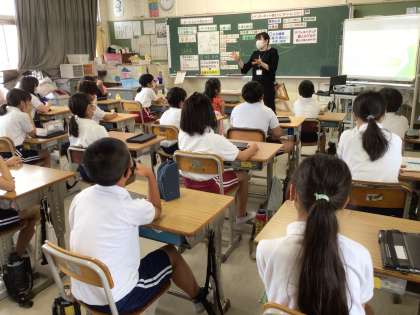 総合の学習で育てている稲がすくすく育っています。中干しの行程に入り、一度バケツの水を抜きました。中干しをすることで、より丈夫な稲が育つそうです。また、これから調べ学習を進めていくにあたって必要となる「インターネットの使い方」について豊田市中央図書館の出前講座で学習しました。とても便利なインターネットですが、信頼できる情報なのかどうか、しっかりとウラをとって調べていきたいですね。