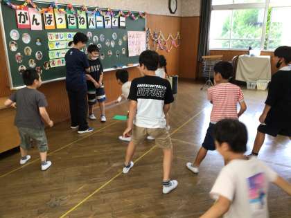 夏休みを前に、7組全員で遊びの会を行いました。6年生が中心になって準備や司会に取り組み、ハンカチ落としやだるまさんがころんだで遊び、みんなで楽しい時間を過ごすことができました。
