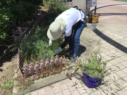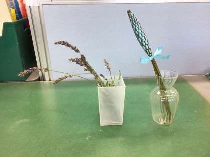 農業に詳しいボランティアの鶴田様にラベンダーの剪定をしていただきました。摘み取ったラベンダーでラベンダースティックも作ってくださいました。職員室がとても良い香りに包まれています。