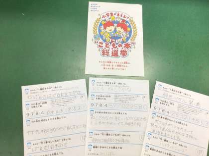 6月に行われた図書館祭り期間中に、今年度は『第4回 小学生がえらぶ!“こどもの本”総選挙』に前山小学校もの児童も投票しました。結果発表は2月10日だそうです。自分の選んだ本がランクインしているか、楽しみですね。
