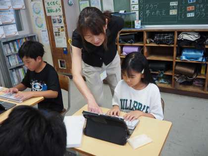9月6日(水)に、ICT支援員の方が来校してくださり、学習用タブレットのキーボード入力について学びました。どの指でどのキーを押すとよいか、ホームポジションについて知り、「キーボー島」というアプリを活用して練習をしました。キーボード入力は、中学校以降も活用できるので、これから使い慣れていけるとよいですね。